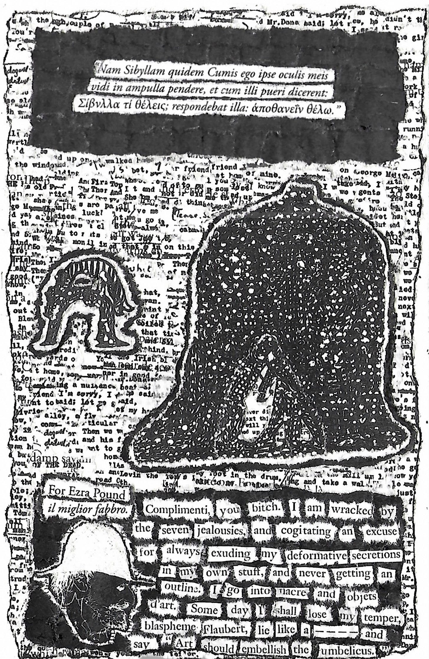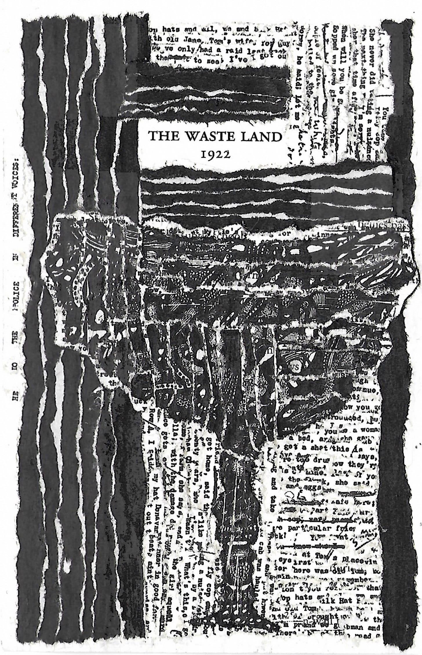 In my work with T.S. Eliot's "The Waste Land," I deconstructed and reconstructed several copies of the poem to present each of its five sections separately to be read in any order. I, then, engaged in a process of "inverse ekphrasis," which involved representing the text's allusions via artistic illustrations rather than textual footnotes. Each image has an allusive meaning within the poem's context. For instance, the chalice in the first image alludes to the cover of "From Ritual to Romance" by Jessie Weston, about which Eliot states: "...so deeply am I indebted, Miss Weston's book will elucidate the difficulties of the poem much better than my notes can do."